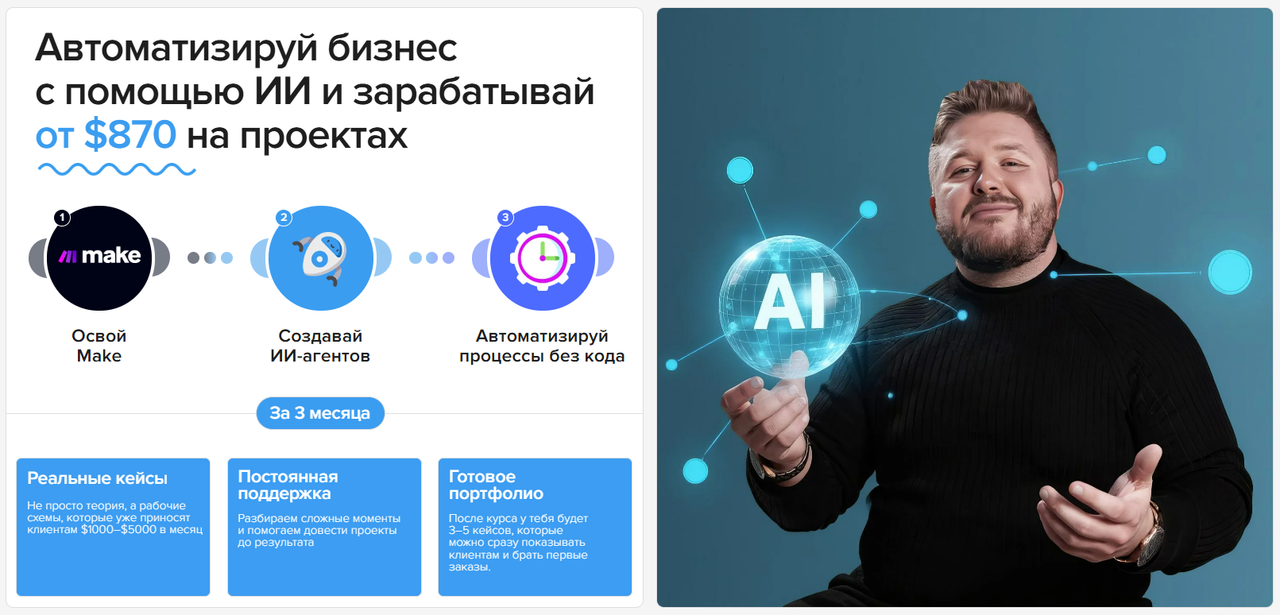 Автоматизируй бизнес с помощью ИИ и зарабатывай от $870 на проектах