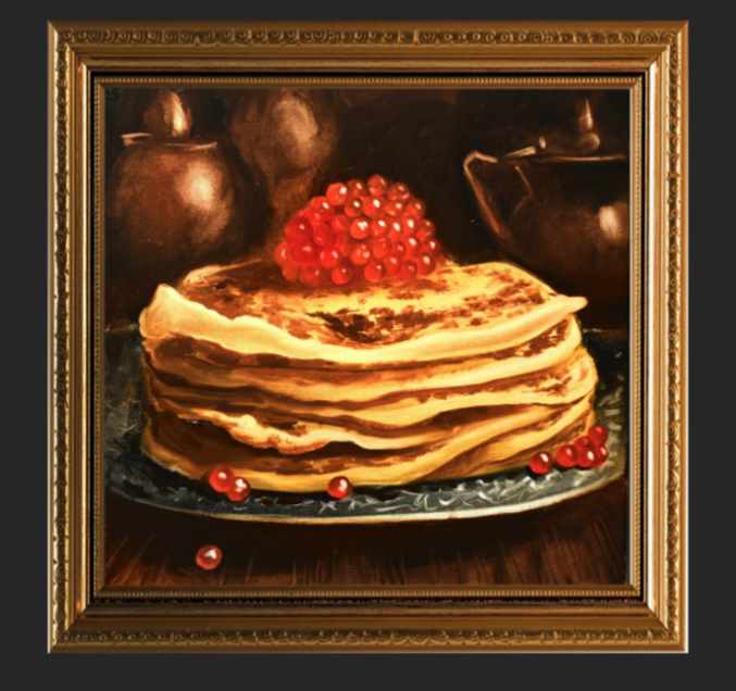 Пышные, вкуснейшие блинчики с икрой, которые не только разбудят аппетит, но и помогут разобраться с быстрым написанием объемных предметов (икринок, кувшинов и др), детализацией фона