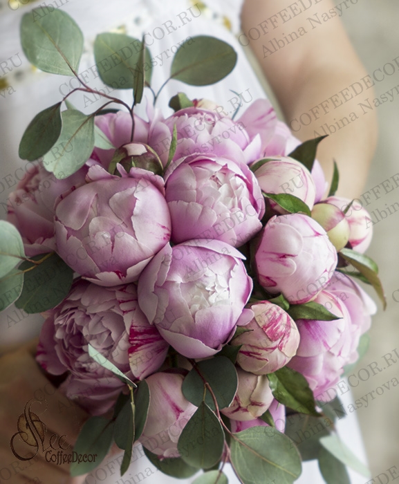 С помощью авторских технологий, описанных в мастер-классе, Вы сможете создавать свадебные букеты, популярные нынче интерьерные композиции с пионами в ведерках, шляпных коробках, деревянных ящиках и т.д.