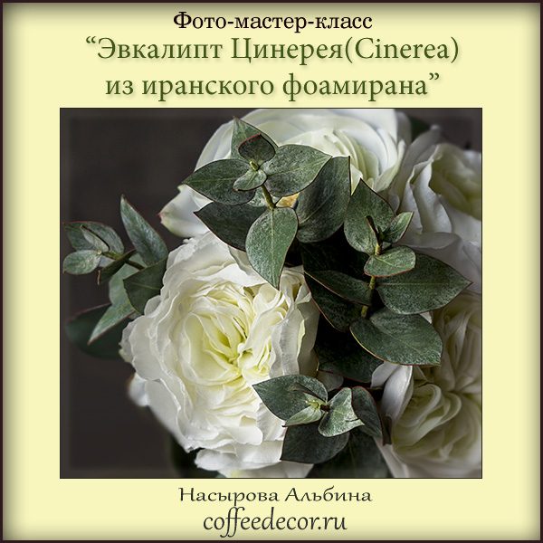 В мастер-классе описаны приёмы и этапы создания веточки эвкалипта Цинерея (Cinerea) с пепельно-серыми листьями из иранского фоамирана.