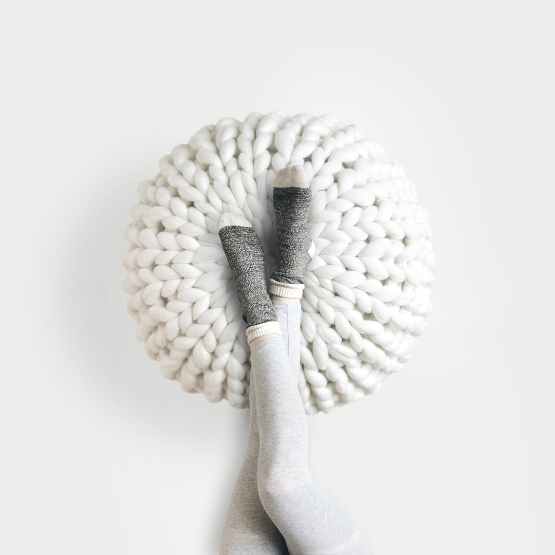 Этот вязаный вручную пуф станет ярким акцентом в любой комнате. Объёмная пряжа придаёт изделию уютную, но современную текстуру и позволяет связать его довольно быстро.