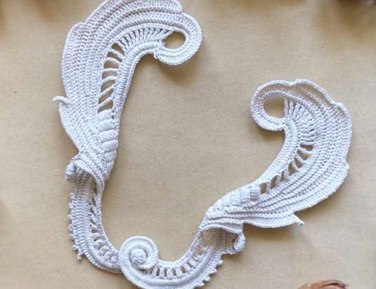 Данный мотив был разработан нашим мастером как альтернатива мотиву "Коринф-волна". Мотив сложный, плотный, симметричный, имеет выпуклости в зоне поворотов, что придает ему еще большую объемность. Очень оригинально смотрится как в изделиях из хлопка, так и из шерсти и полушерсти, что дает нам еще больше возможностей в его применении. Можно использовать, как для композиций с цветами и сеточкой, так и для обрамления горловины и рукавов.