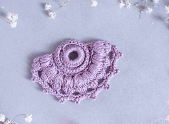 Мотив среднего уровня сложности, разработан автором - Раисой Демидовой и создан специально для данного проекта. В нем используются рельефные и пышные столбики. Особое внимание требуется в вывязывании краёв относительно центра, они должны находится на одной линии.