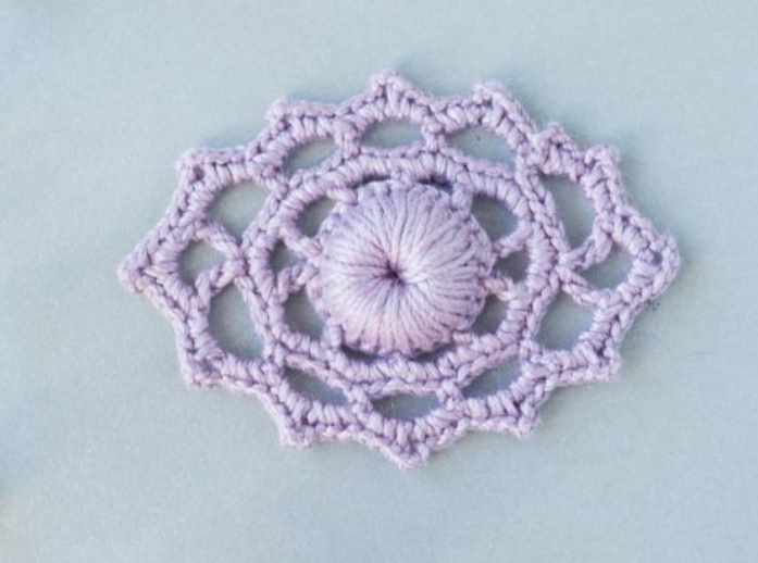 Мотив "Пуговка в овале" - средний уровень сложности. При вязании овала необходимо сохранить все оси этого элемента. Вяжется разновеликими столбиками. Мотив используется как связующий элемент между крупными мотивами в один сюжет. Создан автором Раисой Демидовой на основе классического элемента старинного ирландского кружева.
