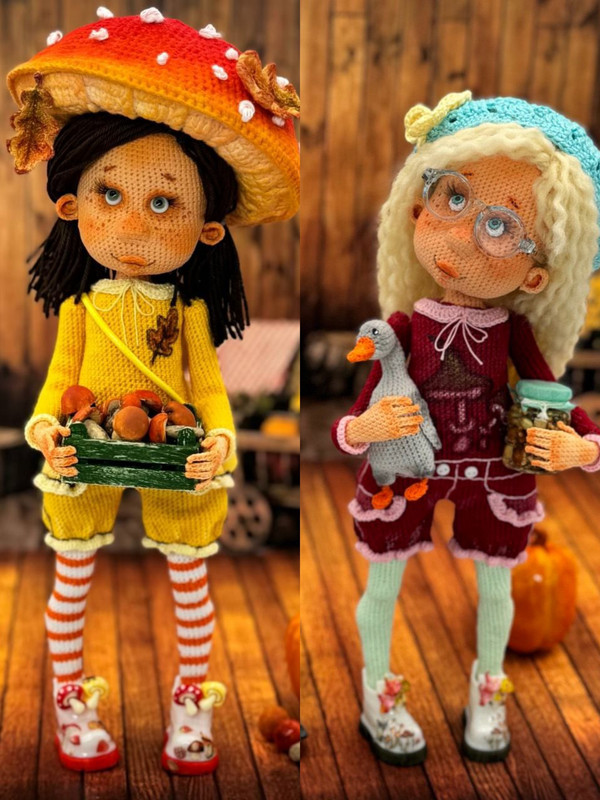 На старом подоконнике уютно примостилась осень — маленькая куколка, сплетенная заботливыми руками бабушки. Её юбочка, словно разноцветный листопад, свисала пушистыми складочками, а шапочка нежно прижималась к взору теплым каштановым цветом. Тонкие пальцы девочки бережно держали спицы, будто бы оберегая секреты прошлого от холодных ветров. А рядом лежал клубочек шерсти, мягкий и теплый, обещавший долгие вечера перед камином, когда хлопают капли дождя по стеклам и мир становится тихим и задумчивым.