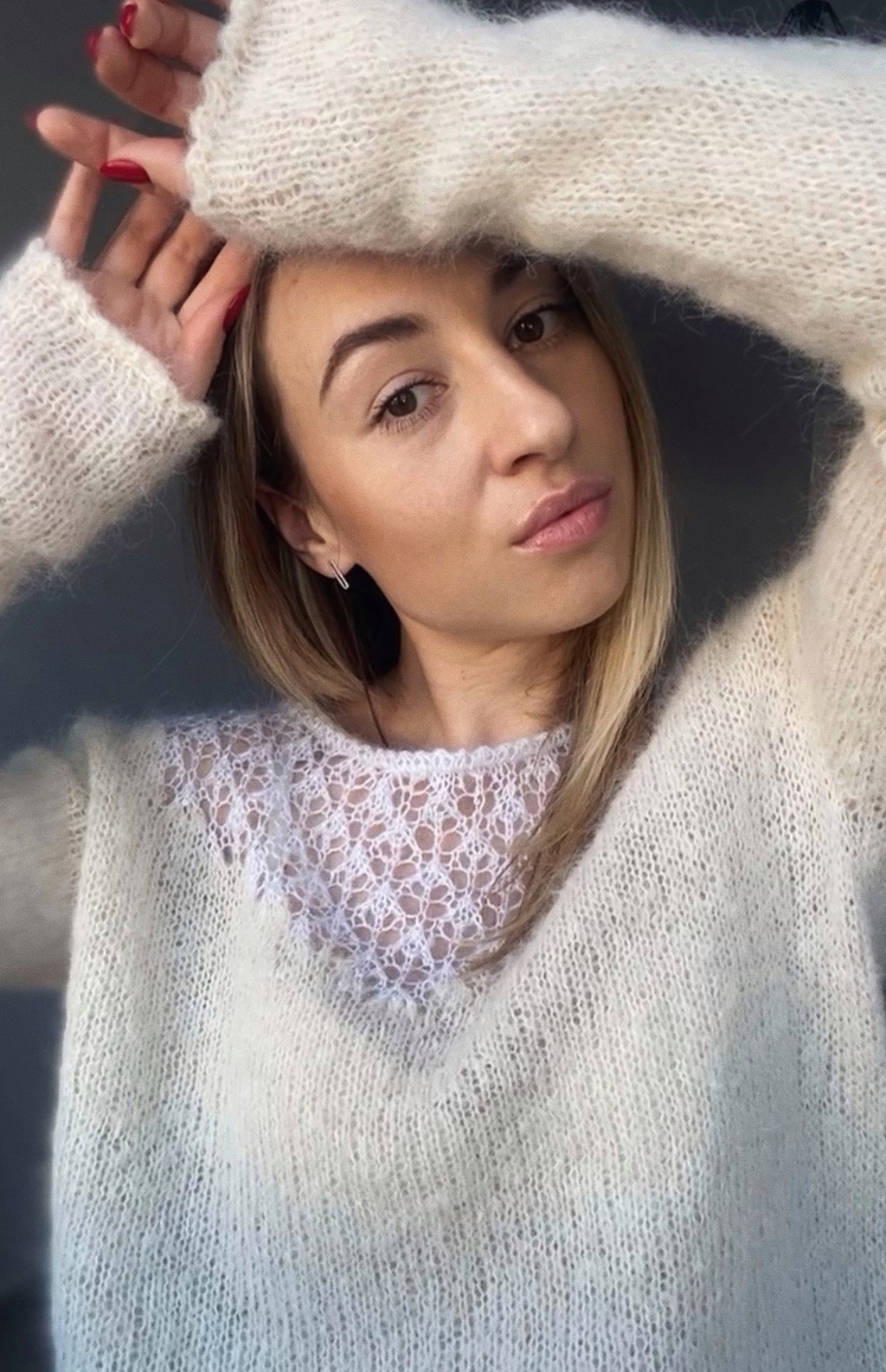 Игривый, манящий и сильно притягивающий взгляды джемпер #кокетливый_ажур! Свяжите ваш вариант: в разных цветовых сочетаниях, однотонным или с пайетками и блестками, как у меня!