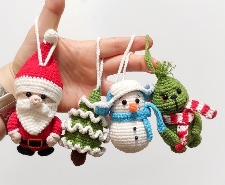 МК содержит подробное пошаговое описание 4-х ёлочных игрушек