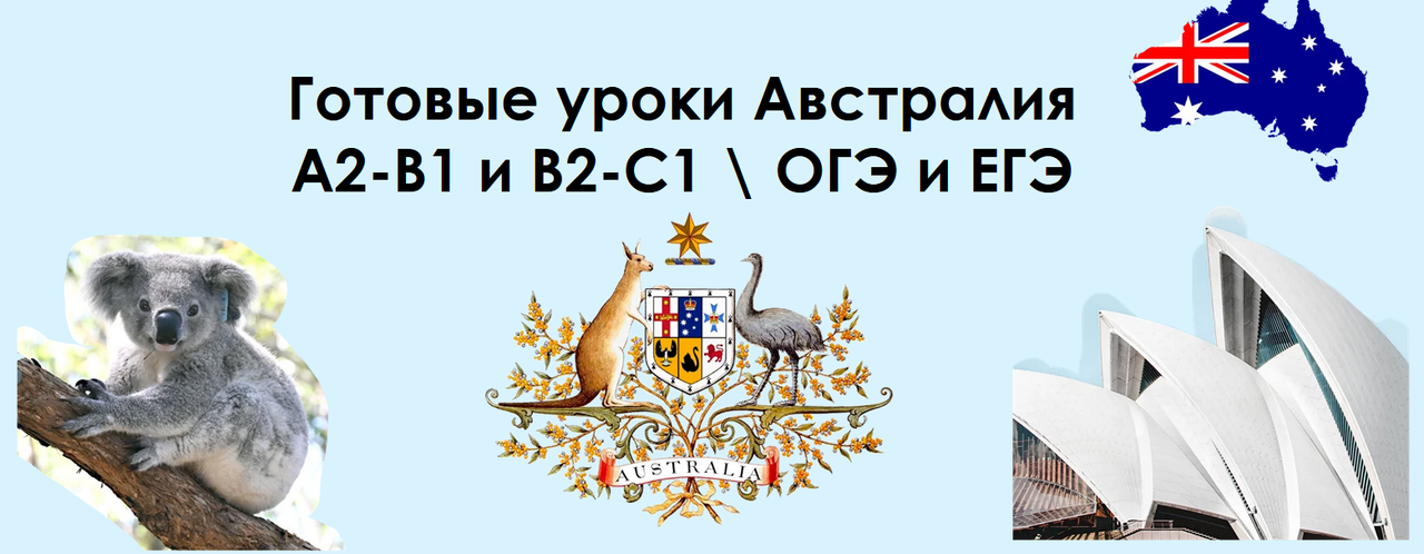 Готовые уроки Австралия для уровней А2-B1(ОГЭ) и B2-C1 (ЕГЭ) - это: