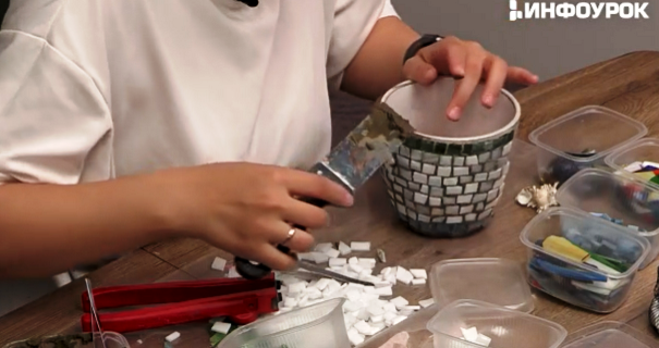 На мастер-классе «Кашпо для растений в технике мозаики» вы узнаете, как сделать декоративное кашпо своими руками, освоив технику прямого набора мозаики на объемной форме. Этот метод позволяет сразу фиксировать мозаичные элементы в растворе, без сложной подготовки. Вы увидите как планировать рисунок, комбинировать материалы и укладывать элементы мозаики так, чтобы успеть завершить работу до отвердевания раствора.