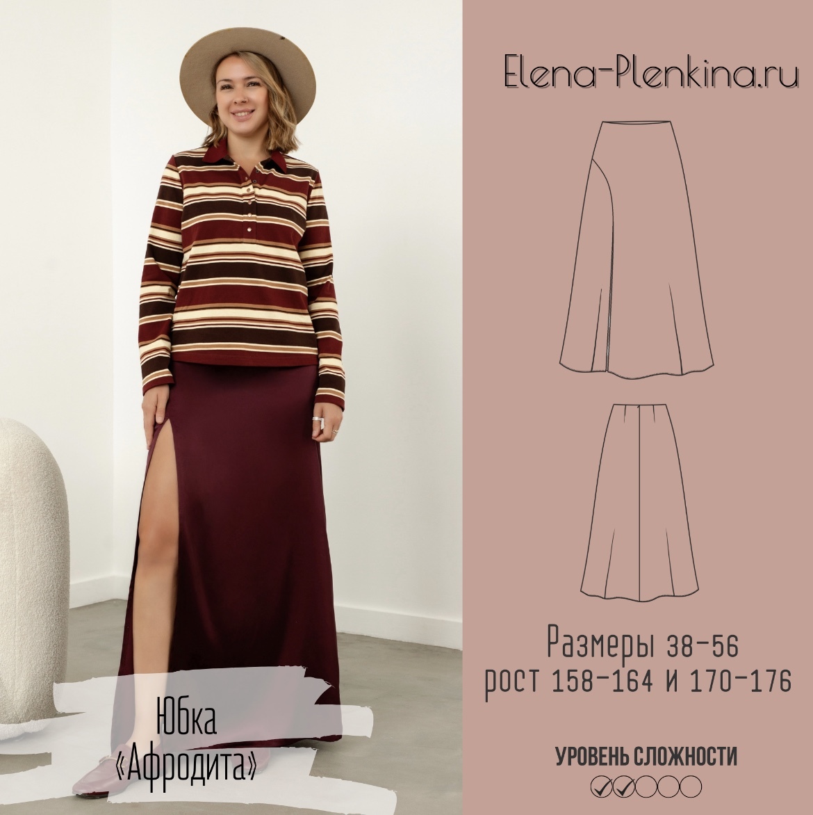 Модель Елена, юбка 44 размера рост 170 см, реальный размер (на момент фотосессии) 44 рост 167 см. Параметры тела: ОГ 88 см, ОТ 74 см, ОБ 98 см. Размер выбран по обхвату бедер. Сшита из искусственного шелка “Армани” плотностью 90 гр/м2, состав: полиэстер 97%, спандекс 3%.