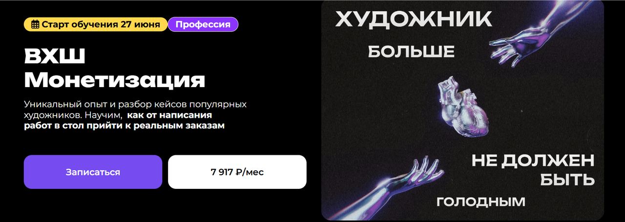 Художник будет успешным, если покажет себя миру. Мы создали программу, которая охватывает большинство сфер, где художественные навыки и творческий подход — это инструменты для финансового роста.