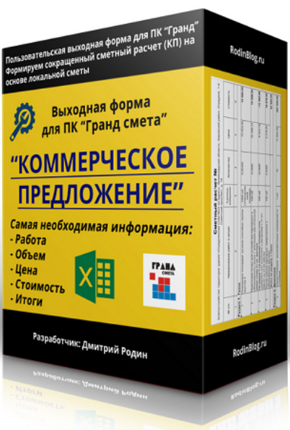 Данная выходная форма позволяет создавать “коммерческие” сметы (КП, коммерческие предложения, ТЗ с ценой позиций) на основе локальной сметы без выгрузки лишних цифр и другой информации, которая может вызывать много вопросов у частных заказчиков. Форма работает как с ресурсным, так и с базисно-индексным методом, проста в установке и не требует специальных знаний от пользователя. В комплекте так же есть формы для выгрузки акта выполненных работ КС-2.