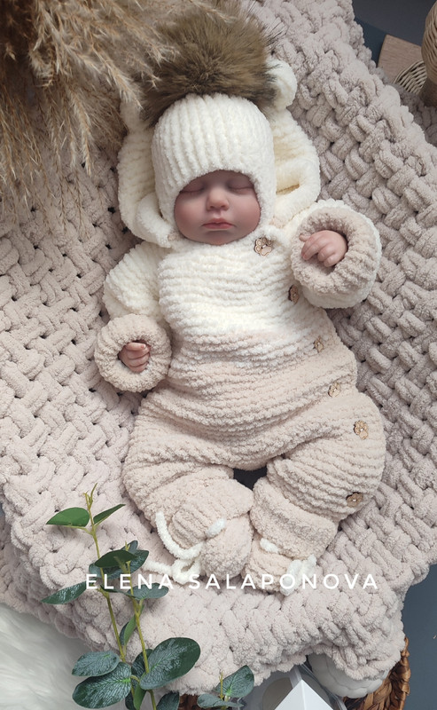 Комплект для малыша в размере 0-3 месяца (на рост 56-62см) из плюшевой пряжи