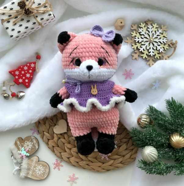 Необходимые материалы: - 80 г пряжи WOLANS Bunny Baby (120 м / 100 г) основной цвет; - 30 г пряжи дополнительного цвета белый (мордочка); - 20 г пряжи дополнительного цвета (кончики лап); - немного пряжи YarnArt Jeans (для платья и бантика); - немного пряжи Alize Softy по желанию (для обвязки платья); - крючок 3 мм для игрушки и 2 мм для одежды; - глаза 18 мм; - носик 10*11 мм; - наполнитель; - игла, прочная нить для пришивания деталей; - ножницы; - маркер для петель; - игла с широким ушком для закрытия деталей; - черная нить для оформления, у меня ирис. Рост игрушки 24 см.