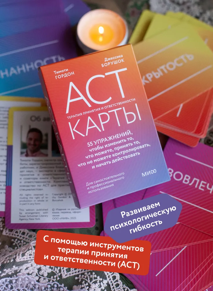 В коробке вы найдете три типа практик от экспертов ACT Тимоти Гордона и Джессики Борушок: