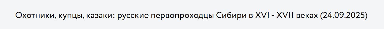 Об уникальной истории русских первопроходцев, которые в исторически очень короткое время присоединили к России огромный и труднодоступный край, вы узнаете на лекции.