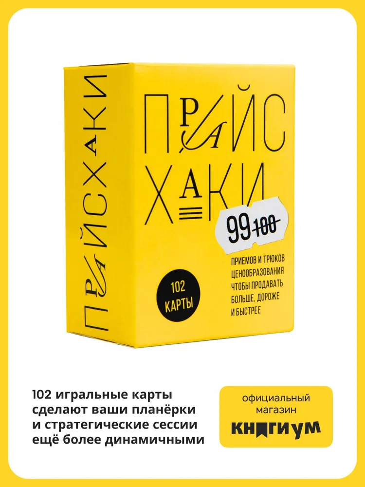 Умнокарты: 102 игральные карты сделают ваши планерки и стратегические сессии еще более динамичными. Практические советы по тому как правильно назначить, презентовать, изменить цену и улучшить процесс оплаты. Хорошее дополнение к книге "Прайсхаки".
