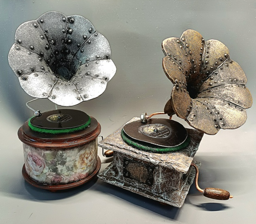 На МК вы "сотворите" 2 винтажных граммофона, один — брутальный, второй — более нежный. Хотите дерзкую фотосессию или мимимишные фото — все возможно с этим оригинальным фотореквизитом. По материалам все очень доступно. У меня в арсенале много фишечек и лайфхаков, которые помогут вам сделать оригинальный и уникальный фотореквизит.