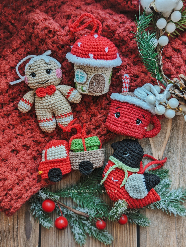 Мастер-класс «Новый год 2». В наборе 5 игрушек. МК содержит описание поэтапного вязания игрушки и фото деталей игрушки. МК не содержит уроков по вязанию крючком, предполагается наличие основных навыков вязания.