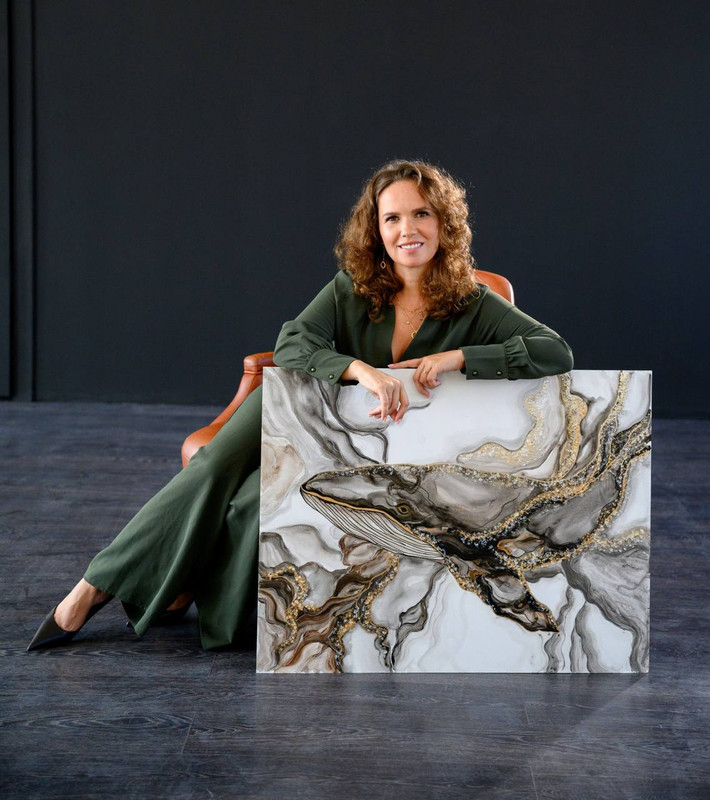 Август мы начнем с большой картины PRO-уровня в новой технике - мокрый акрил Роскошный кит буквально заплывет в наши ВАУ-эффекты!