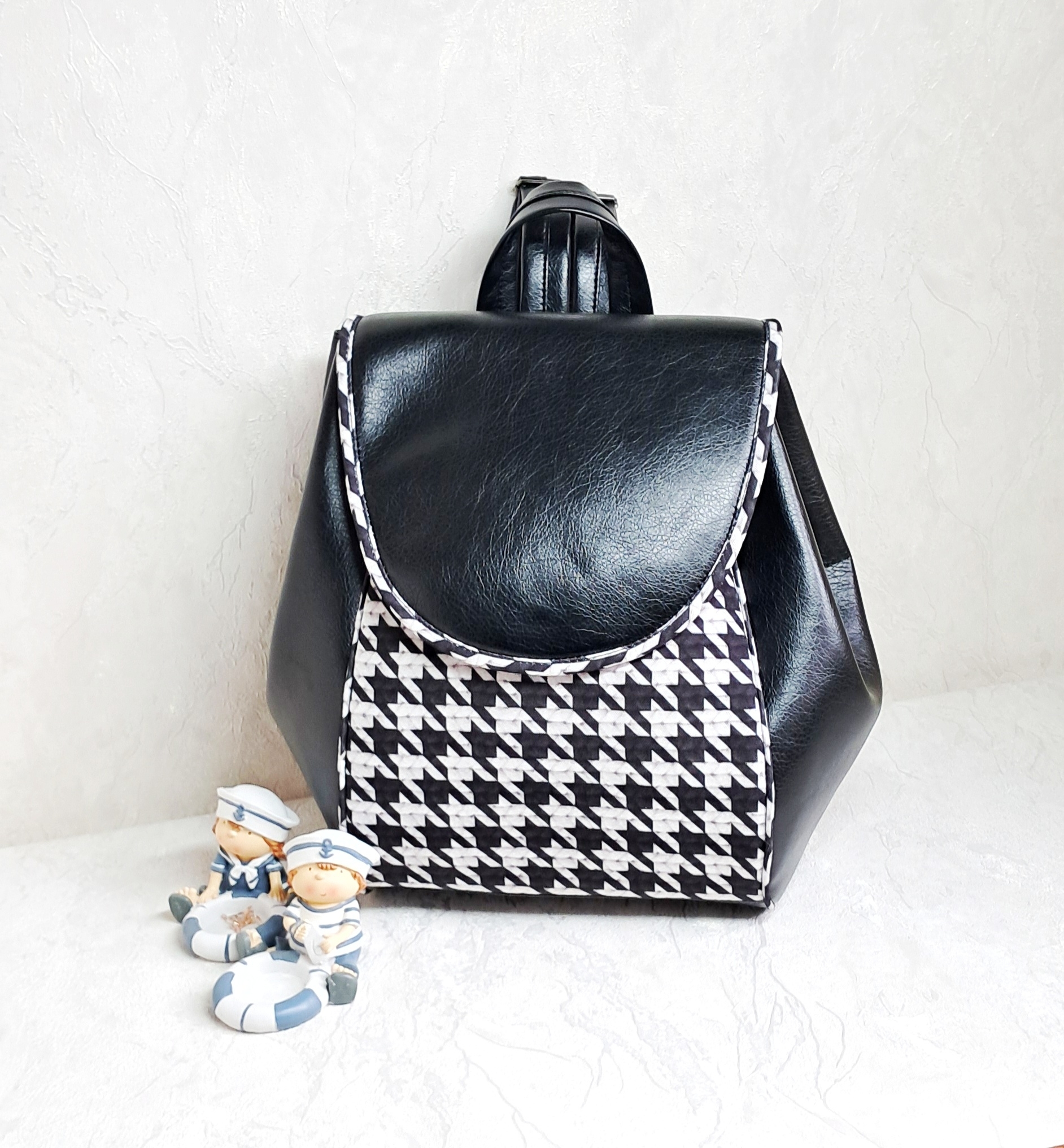 Вместительный женский рюкзак, который можно сшить и для мужчины. Размер рюкзака: высота 34 см, длина по донышку 24 см, ширина сбоку по донышку 15,5 CM.