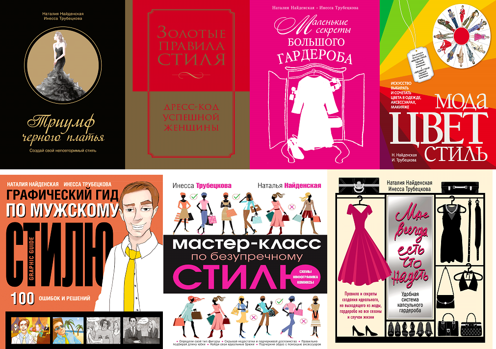 Наталия Найденская, Инесса Трубецкова - ведущие эксперты в области имиджа и стиля, авторы уникальных технологий обучения специалистов по имиджу, учебников для стилистов и шоперов, а также бестселлеров «Библия стиля. Дресс-код успешной женщины», «Библия стиля. Дресс-код успешного мужчины», «Маленькие секреты большого гардероба», «Мода. Цвет. Стиль», «Триумф черного платья» и др.5. Мне всегда есть что надеть