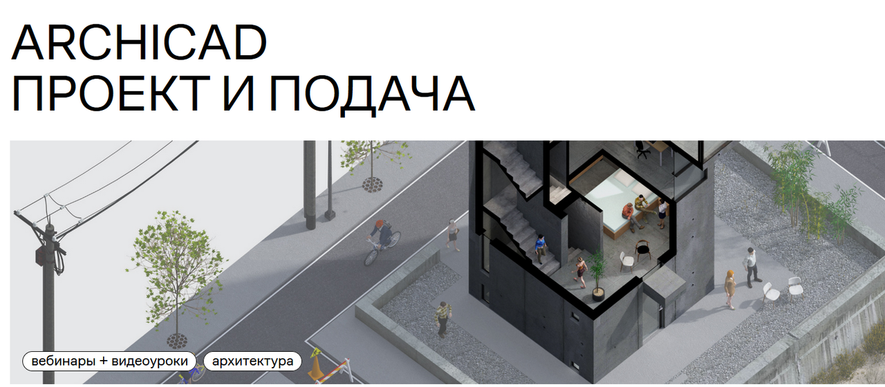 ArchiCAD: проект и подача — практический курс по работе с ArchiCAD, который позволяет освоить BIM-моделирование с нуля и пройти все этапы проектирования: от первых эскизов до детализированных 3D-моделей, альбома чертежей и визуализации.