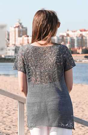 Топ «Silent Bloom» вяжется без швов от горловины вниз. Сначала выполняется кокетка спинки, затем петли для полочек поднимаются вдоль плеча. Две половинки полочки сначала вяжутся отдельно, а затем соединяются после формирования круглого выреза горловины. После формирования проймы соединяются спинка и полочка, затем тело свитера вяжется одной деталью по кругу до желаемой общей длины.