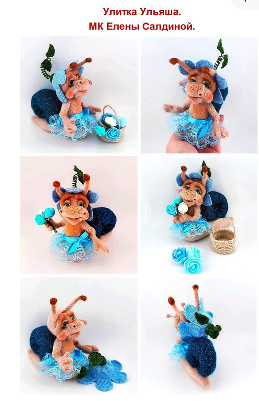 Мастер класс Салдиной Елены. Улиточка полностью на проволочном каркасе, все части тела подвижны. Голова и раковина пришиваются. При желании можно закрепить голову при помощи шплинтового крепления. Размер игрушки зависит от толщины выбранной вами пряжи. У меня размер улитки из заявленных материалов - 12см в высоту без учета рожек и шапочки и 12см в длину. МК не является обучающим материалом. Уровень сложности - выше средней. Для вязания необходимы навыки вязания крючком и умение тонировать привычными для вас материалами. МК содержит подробное описание процесса вязания и оформления игрушки, тонировки, вязания шапочки. Каждый этап сопровождается пояснительными фотографиями. МК в формате PDF на 43-х страницах.