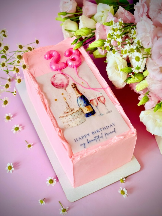 Прямоугольный торт с открыткой.