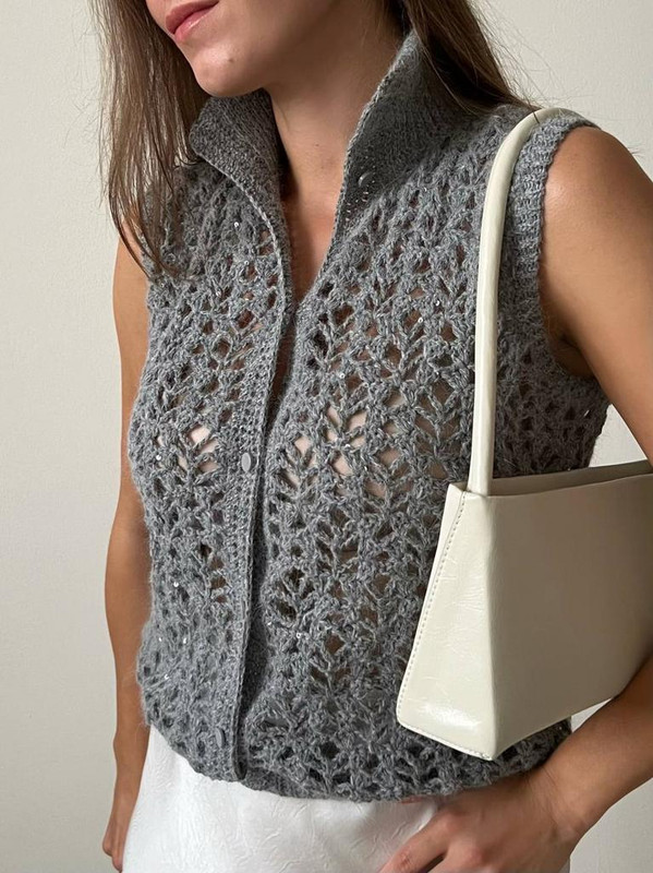 Второй вариант жилета связан из пуха норки + хлопковая нить с микропайетками